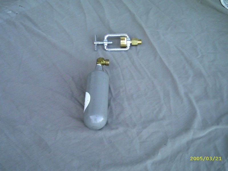 Minipomflaschen werden mit dem Ventil in den Bügel eingesetzt und mit dem Schnellverschluß festgeklemmt. Mit diesem Füllanschluß ist ein sicheres und rationelles Füllen der Minipomflaschen in geringen Stückzahlen möglich.